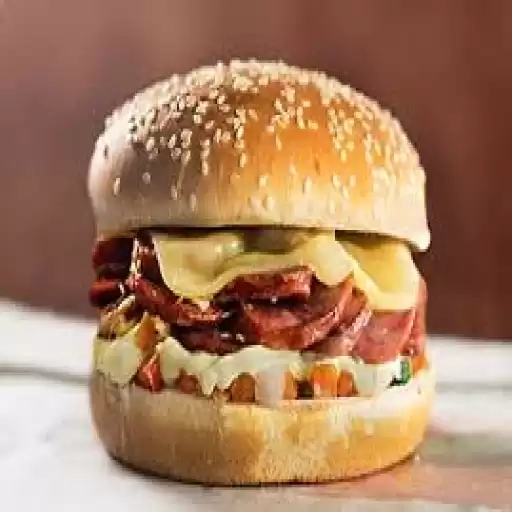Este prato robusto apresenta um par de hambúrgueres suculentos, envoltos em mussarela derretida e presunto fatiado. Aco... Ver completo
